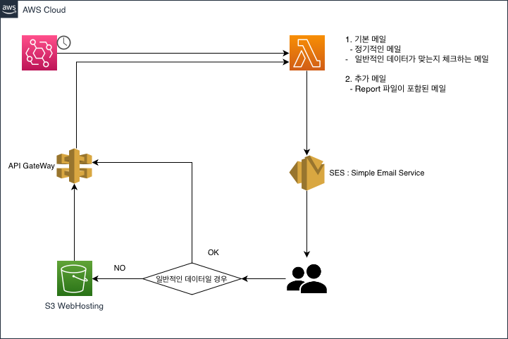 5. API Gateway 호출을 받은 Lambda 는 마지막으로 Report 메일을 사용자에게 송신